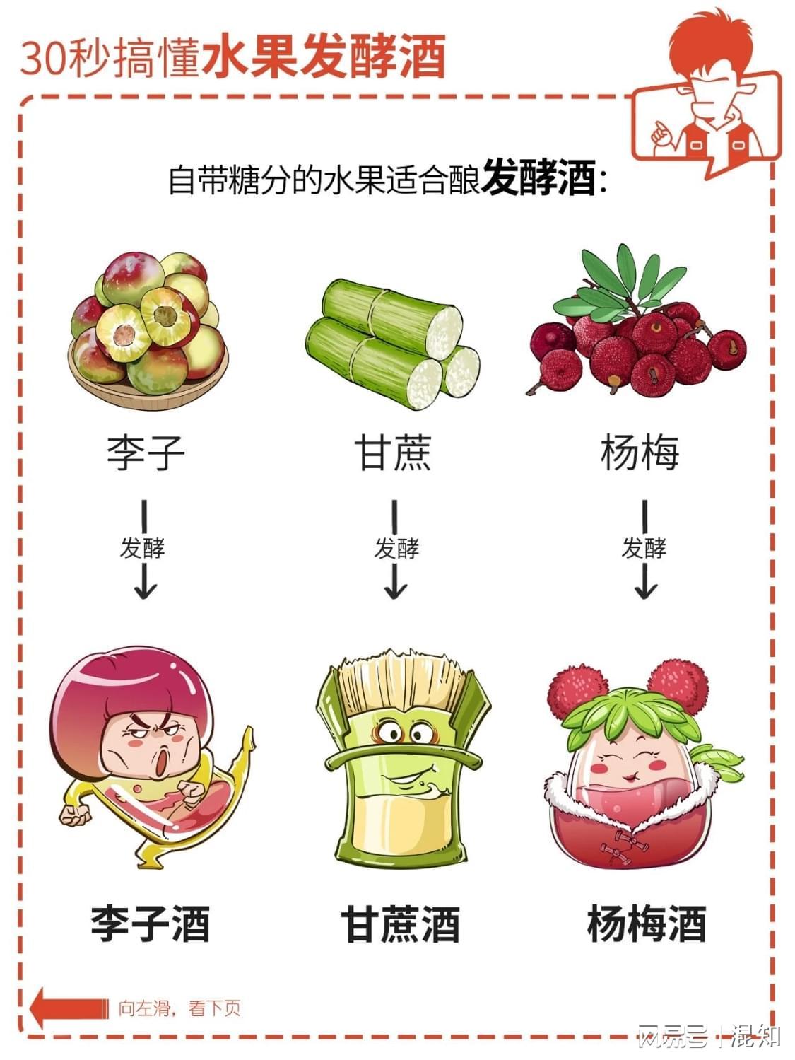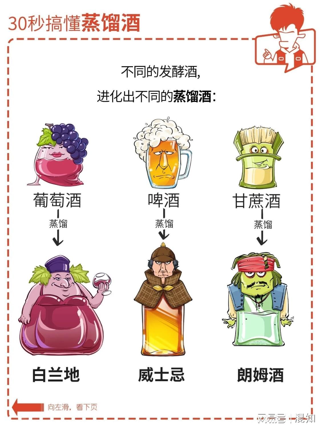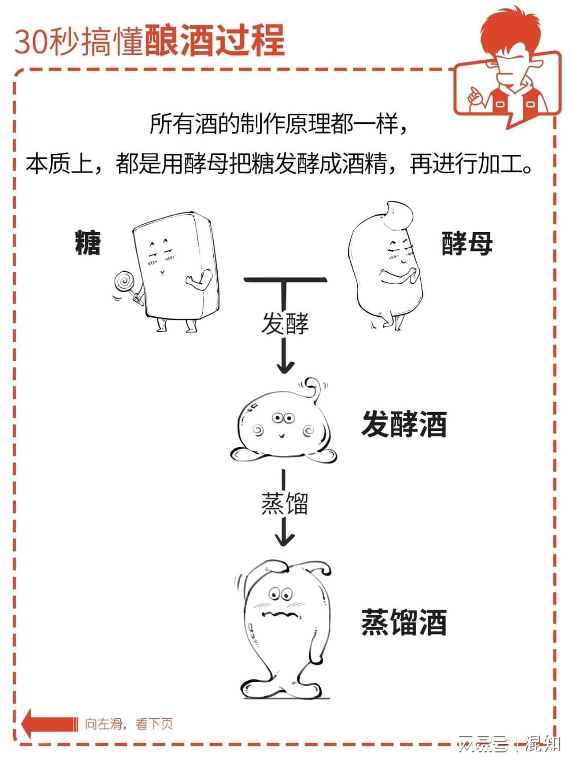 白酒、红酒、伏特加,啤酒、黄酒、白兰地,香槟、朗姆、威士忌……这么多酒,到底有啥不一样?简单来说,所有酒的制作原理都一样,本质上就干了一件事儿:把植物里的糖发酵成酒精,再进行各种加工。原料、酵母、酿造手法不同,造就了各种不同的酒。只用 30 秒,混子哥带你速通各种类型的酒。点击图片,看清晰...
